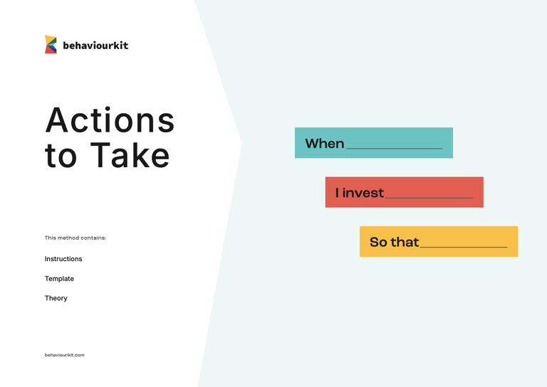 The Actions to Take method helps you define what people actually do to reach their goals. It turns broad intentions into clear, measurable steps. So you can see behaviour as a sequence of actions, not just outcomes.
